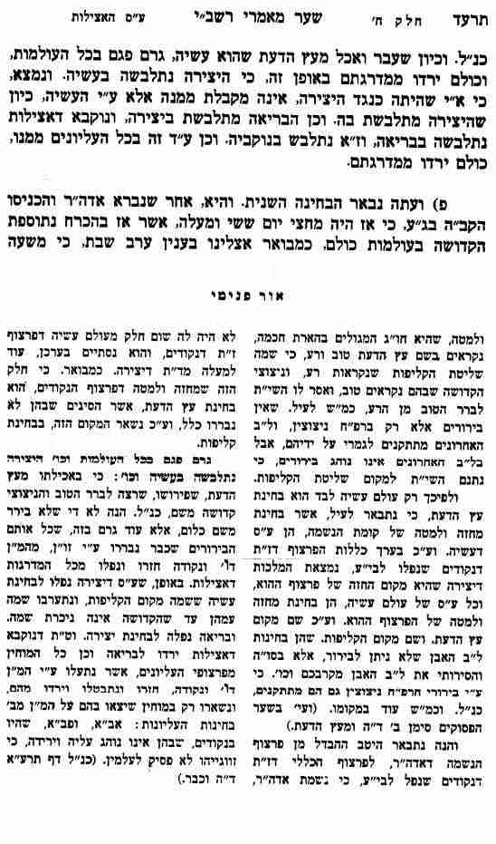 1.לאחר קביעות עולם האצילות שתוקנו רק מצב הא' ומצב הב' מעולם הנקודים דהיינו אחור באחור ופנים באחור נשאר כל מצב האחוריים של עולם הנקודים שלא תוקן.