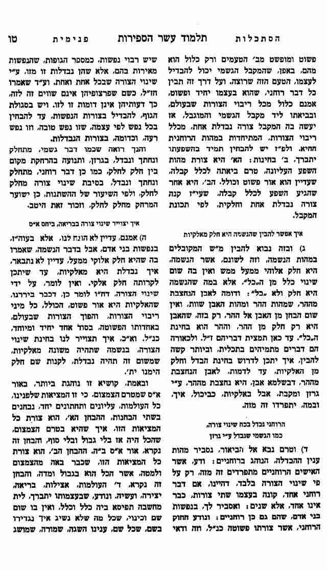 " ונודע החוק הרוחני, אשר צורתו פשוטה כנ"ל, וזה ודאי שיש ריבוי נפשות כמספר הגופות שהנפשות מאירות בהן אלא שהן נבדלות זו מזו, ע"י שינוי הצורה שבכל אחת ואחת. וע"ד שאמרו חז"ל, כשם שפרצופיהן אינם שווים זה לזה, כך דעותיהן אינן דומות זו לזו."