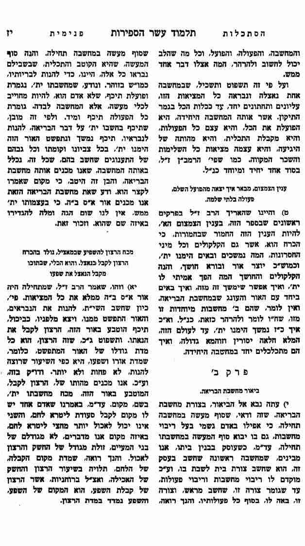 ב. באינסוף היתה אחדות פשוטה לא היה שם יסורים אבל היה רצון לקבל.