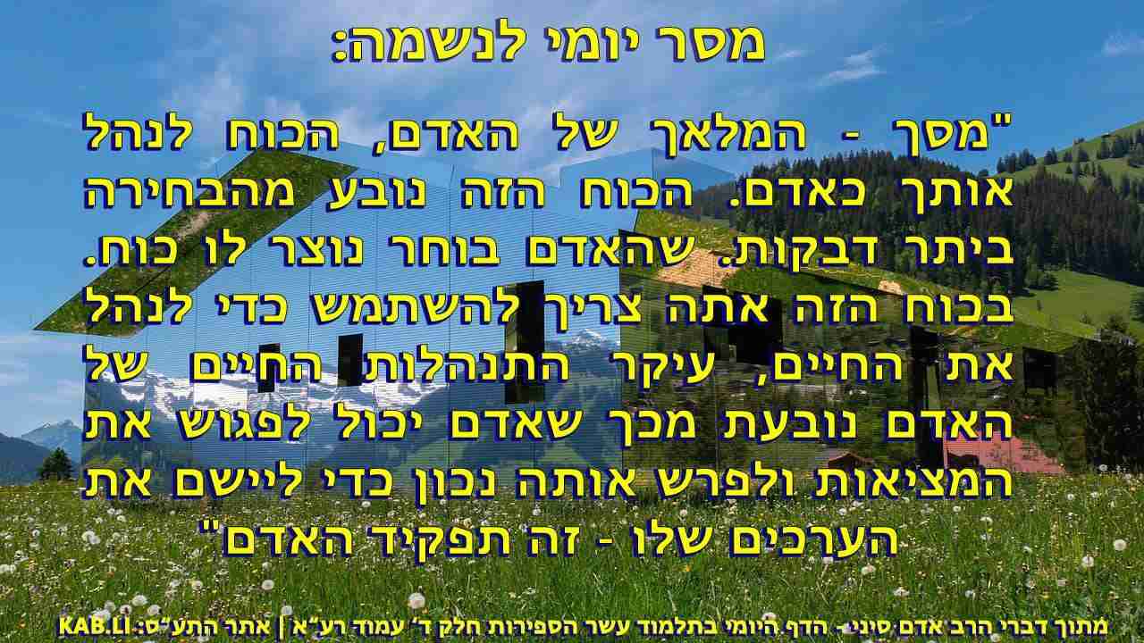 10. כאשר אדם קונה את שבע בחינות אלה שבמסך, יכול לנהל את האני שלו באופן הראוי עד להגיע לאידאה שלו שהיא אהבת ה'.