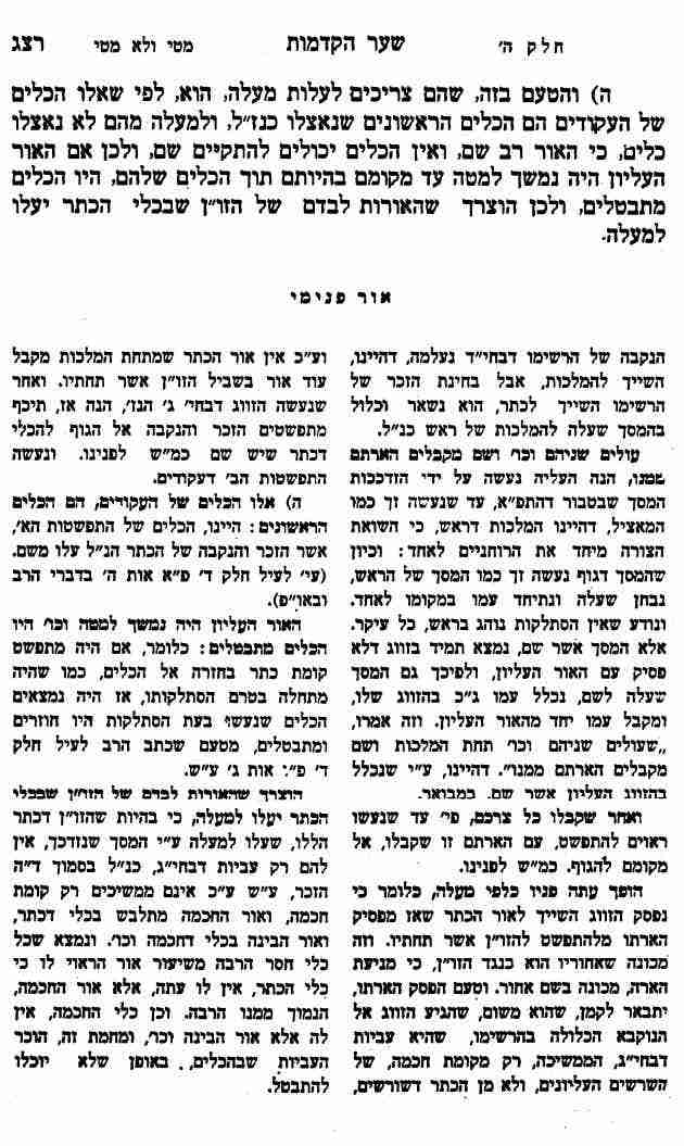 האור העליון היה נמשך למטה וכו' היו הכלים מתבטלים: כלומר, אם היה מתפשט קומת כתר בחזרה אל הכלים, כמו שהיה מתחלה בטרם הסתלקותו, אז היה נמצאים הכלים שנעשו בעת הסתלקות היו חוזרים ומתבטלים, מטעם שכתב הרב לעיל חלק ד' פ"ו אות ג' ע"ש.
