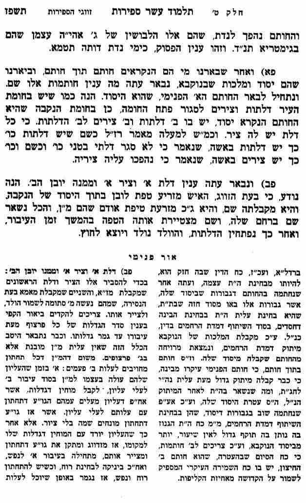 והמלכות שלו למקום התפארת לכן לא יכולה יותר לקבל הארה מיסוד
